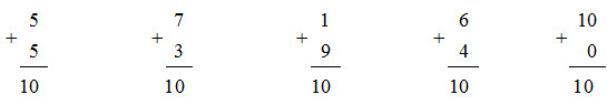 6 + 4 = 10 2 + 8 = 10 9 + 1 = 10 3 + 7 = 10