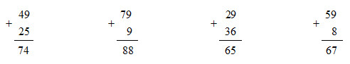 49 + 25 79 + 9 29 + 36 59 + 8