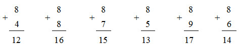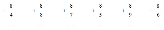 8+4=..... 8+2+2=..... 9+8=..... 9+1+7=..... |