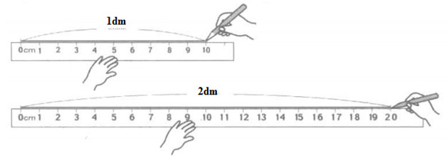 b) Viết 1dm, 2dm vào chỗ chấm thích hợp: